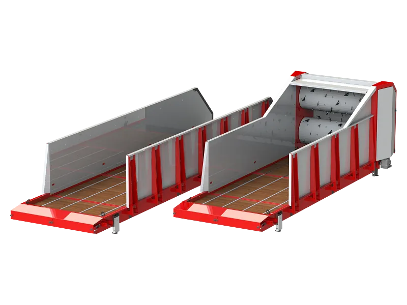 MaxiFeeder is available in several sizes and can be delivered with different leg sets. The machine has an integrated feed table with high capacity and can be connected to and control a conveyor. MaxiFeeder has connections for external start and stop signals.